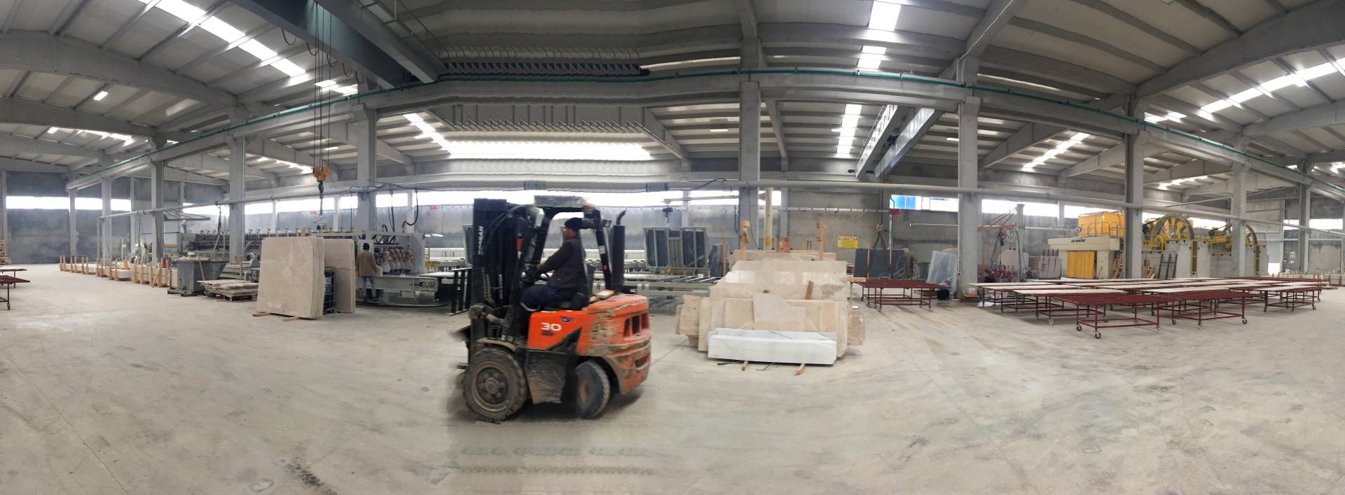 The company produces 200,000 m² of marble and travertine slabs annually at its facility, which comprises 5,000 m² of indoor and 7,000 m² of outdoor space on a 12,000 m² plot. It offers a wide range of products and services, from block and slab marble production to custom-sized products and project-based solutions. Thus, it meets the needs of the architecture and construction sectors with the highest quality.